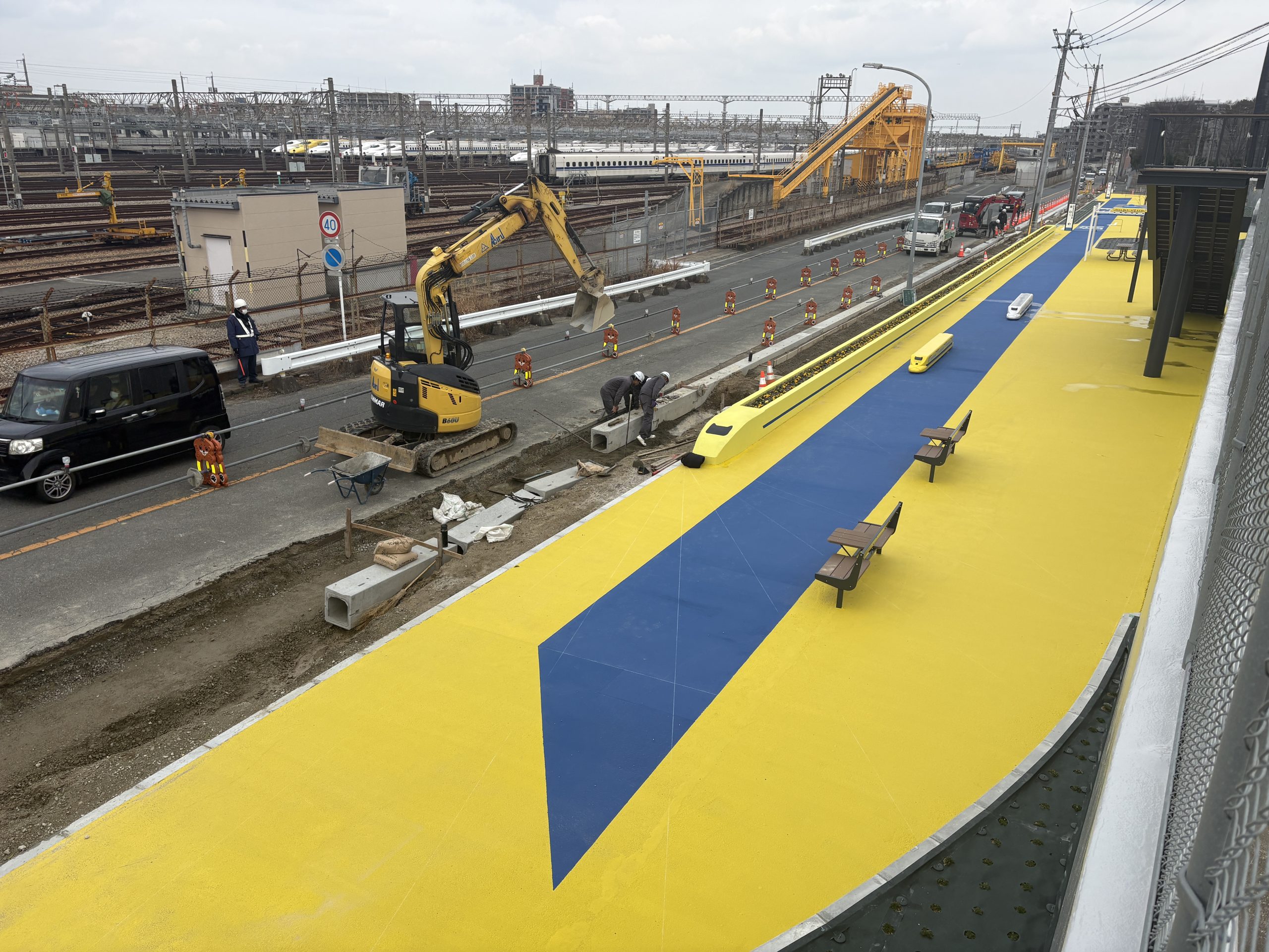 そこを登ると新幹線車両基地が一望できます。