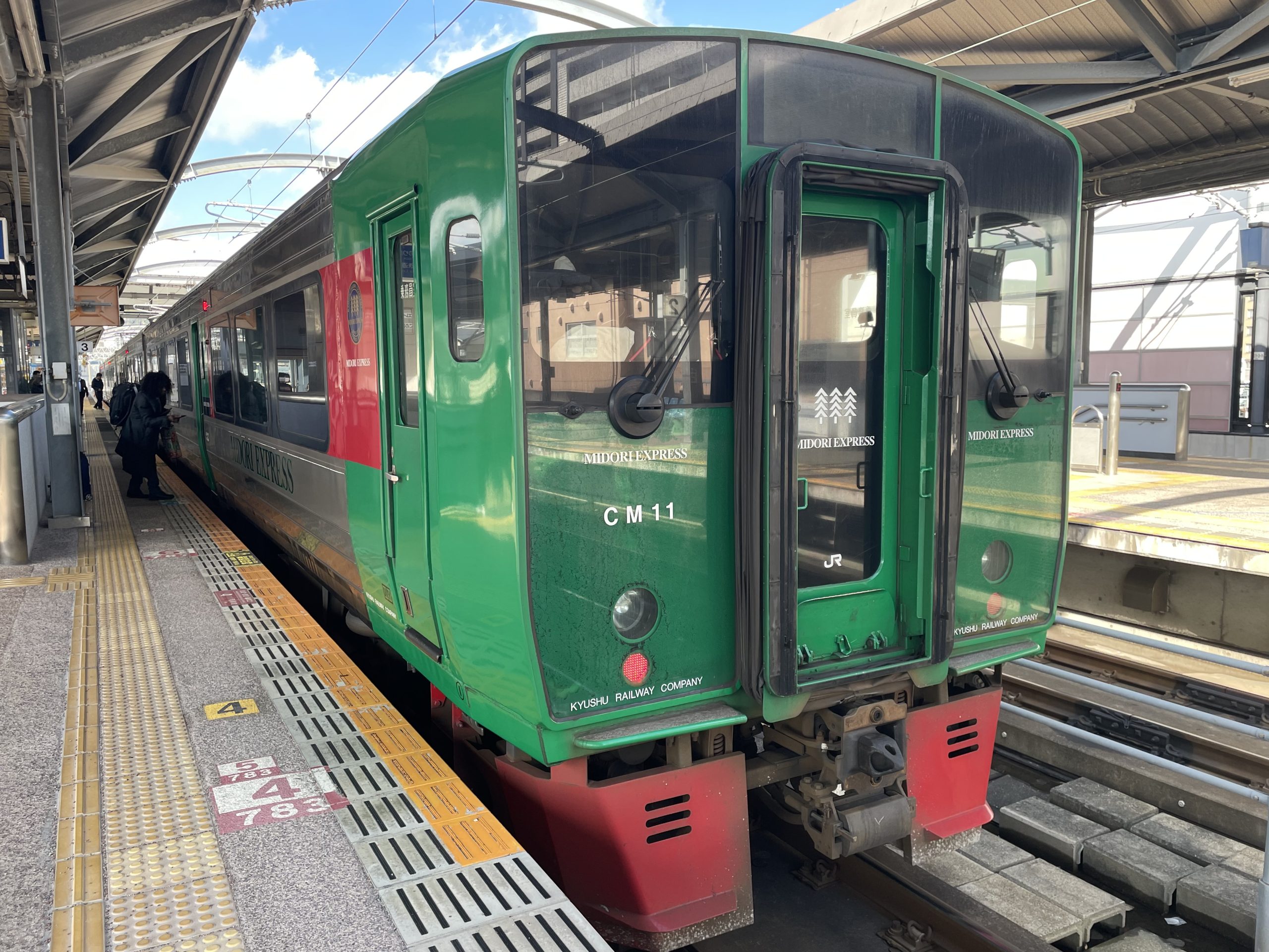 昨日乗車した特急みどりは、早岐駅でハウステンボス号と切り離し佐世保へ向かう特急で、昔JR九州で流行ったハイパーサルーンの車両でした。