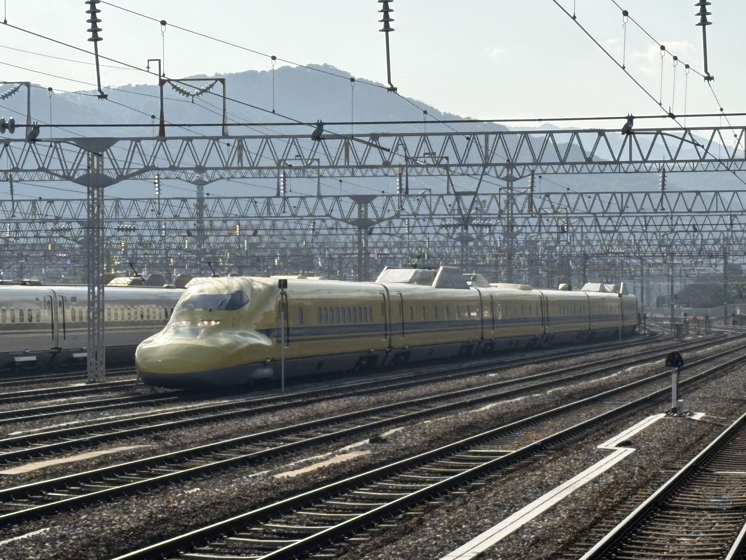 のぞみ検測では停車しないあんな駅や、こんな駅にドクターイエローが停車しながら走行する、こだま検測下りです。
