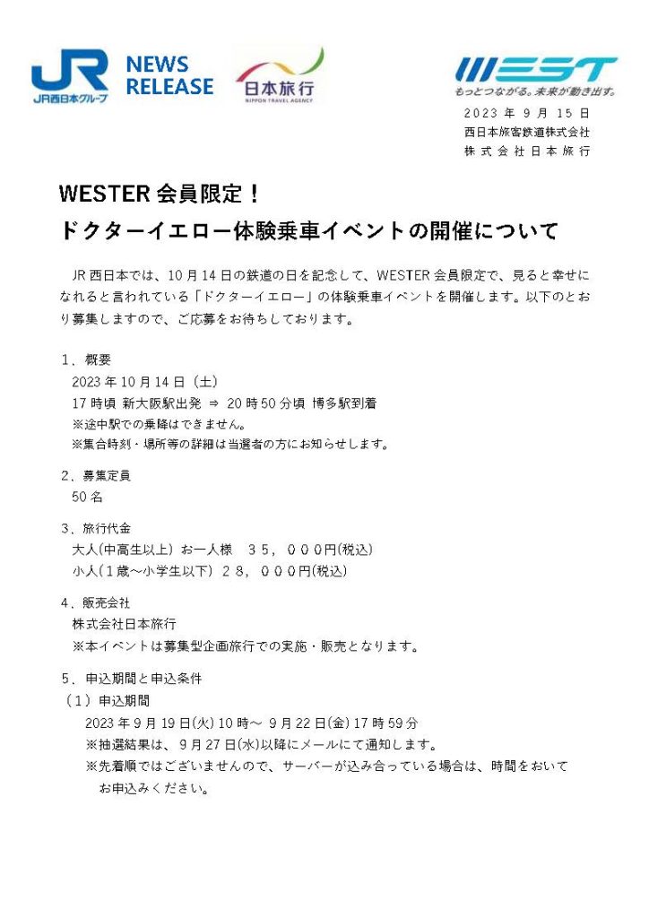 10月14日(土)鉄道の日、新大阪→博多に乗車できるツアー、定員50名!