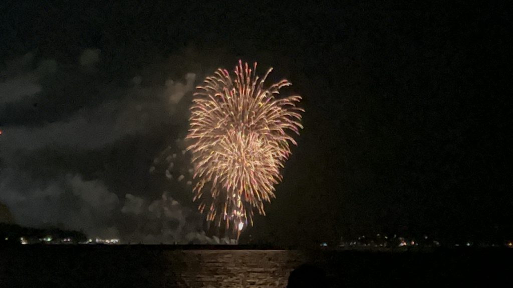 写真は、仕事帰りに遠くで上がっている花火を見ました。
