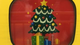 ドクターイエローの窓に飾られたクリスマスツリー。