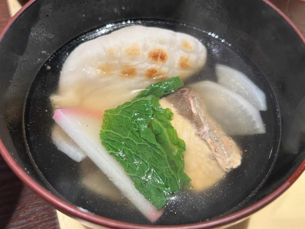 もちつきの後は店内でお雑煮・焼き餅・おしるこなどを無料でいただきました。