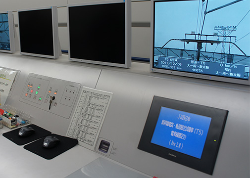 隣のモニター消えていますが、本当は、架線の減りなどの状況が見れるモニターになっております!